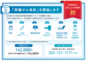 名古屋市立大学医学部附属東部医療センターでの膵臓がん検診1泊2日が2026年2月開始になります。
